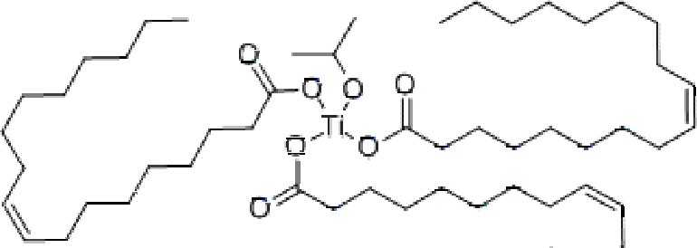 Product Name:isopropyl trioleyl titanate CAS NO:136144-62-2 Molecular Formula:C57H106O7Ti Structural Formula: